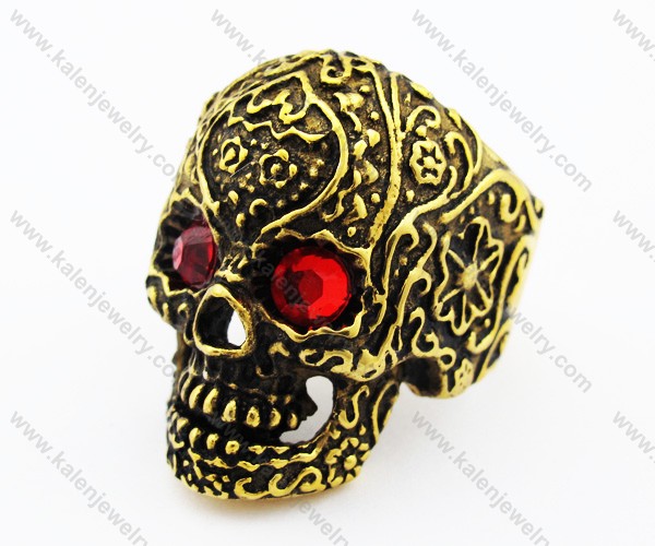 The Video Of Gold Plating Stainless Steel Inlay Red Stone Eyes Skull Ring - KJR010191: