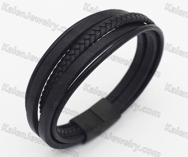 Stainless Steel Leather Bracelet - KJB400036 Price:$8.57