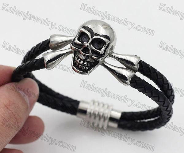 Stainless Steel Red Leather Bracelet - KJB050383 Price:$4.76