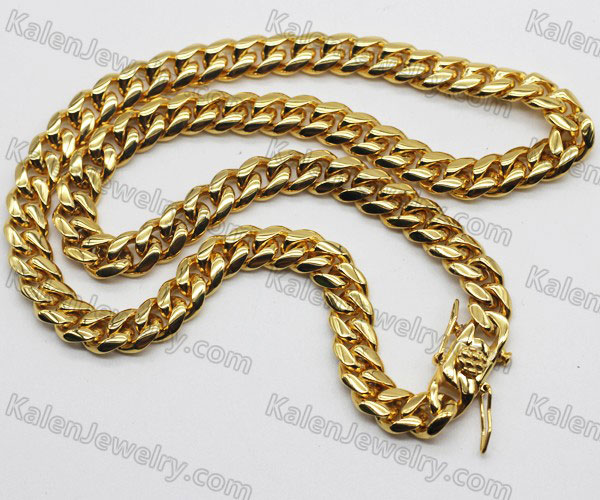 18mm Wide Large Half Gold Steel Necklace KJN590005 Price:$15.56