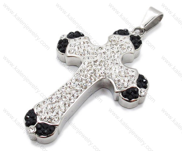 Stainless Steel B & W Crystal Cross Pendants - KJP050961