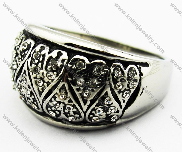 Stainless Steel Casting Heart Rings with Clear Stones - KJR010096