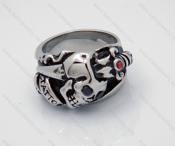 Stainless Steel Casting ED Hardy Skull Rings with Ruby Stone - KJR010032