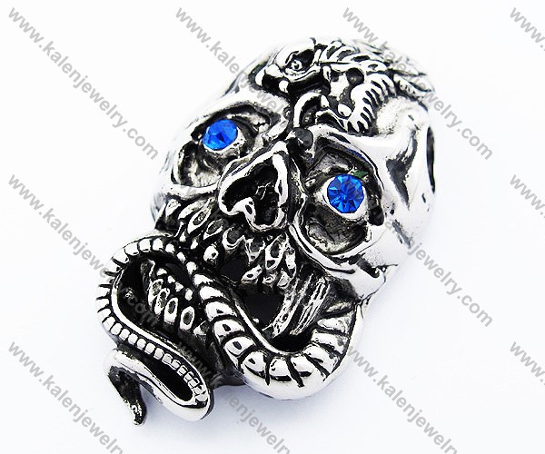 Stainless Steel Snake & Blue Zircon Eyes Skull Pendant - KJP300035