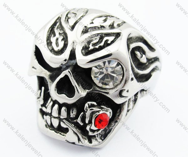 The Video Of Stainless Steel Zircon Eyes & Biting Inlay Red Stone Rose Skull Skull Ring - KJR370049: