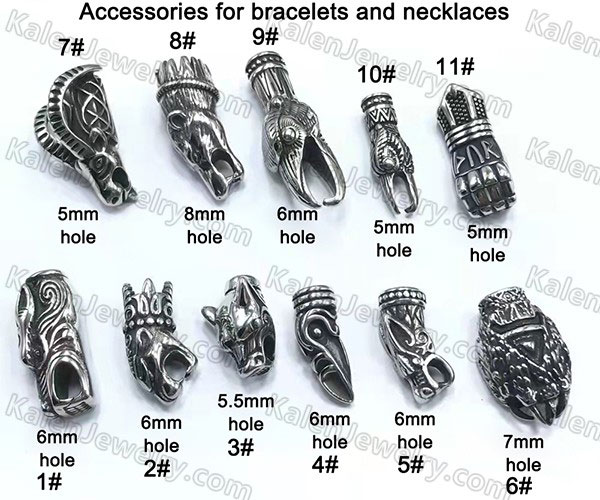These are the accessories for DIY bracelets and necklaces. They need to be welded on the steel chain, or glued on the leather. You can buy some leather chains to make some own designs with them.