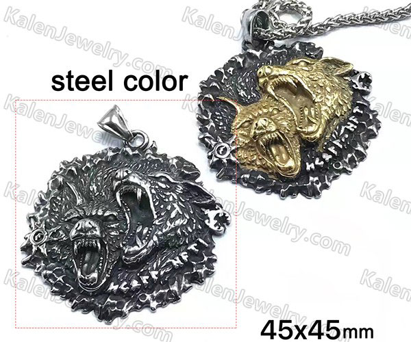 two-tone wolf pendant KJP128-0069 Price:$1.95